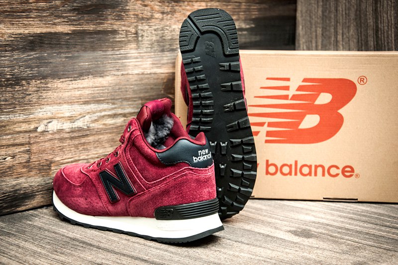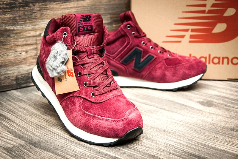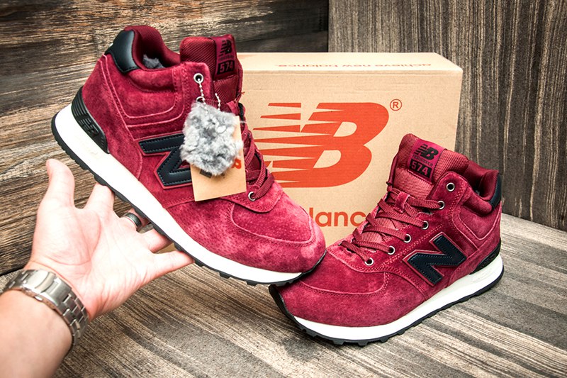 Мужские высокие кроссовки на меху New Balance 574 Mid-Cut бордовые